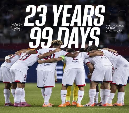 巴黎圣日耳曼今天的欧冠阵容也创下一个记录,对阵巴塞罗那,大巴黎的这套首发阵容年龄均为23岁99天,是卫冕冠军在欧冠比赛中首发阵容第二年轻的球队。