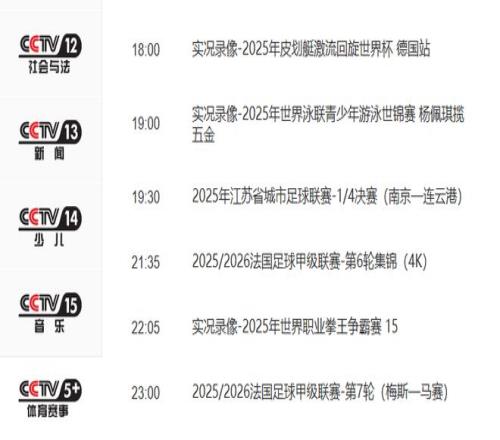 央视最新节目单显示,央视体育赛事频道(CCTV5+)将从10月4日19:30开始,连续聚焦直播相关场次的比赛。央视电视平台直播苏超,这应该是首次。