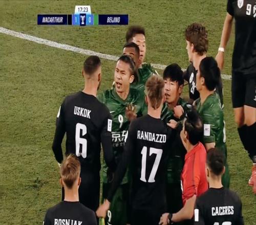 对手的身体对抗优势明显,北京国安很难在中场占到便宜,只能通过边路寻找传中的机会。池忠国飞铲布拉坦,引发双方的冲突,幸亏裁判和双方球员及时拉开,避免冲突进一步的扩大。